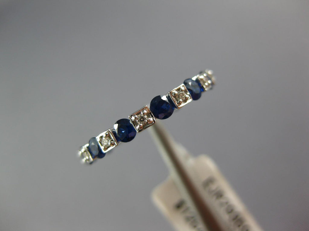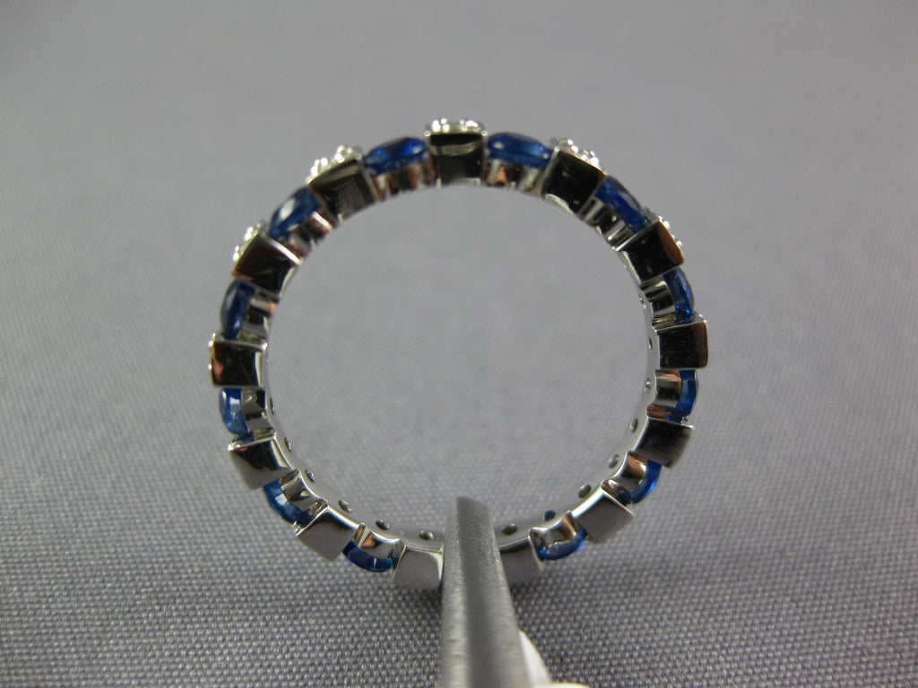 14KT WHITE GOLD ANNIVERSARY RING. 3D SQUARE ETERNITY DESIGN. DIAMONDS ARE F/G COLOR, VSSI CLARITY .10 CARATS. AAA ROUND SAPPHIRES ARE 1.61 CARATS. MEASURES 2.5mm WIDE. RING SIZE 5.5. CAN BE SIZED BY OUR MASTER JEWELER UPON REQUEST. WRITTEN APPRAISAL AVAILABLE. COMES IN A PRESENTABLE GIFT BOX.