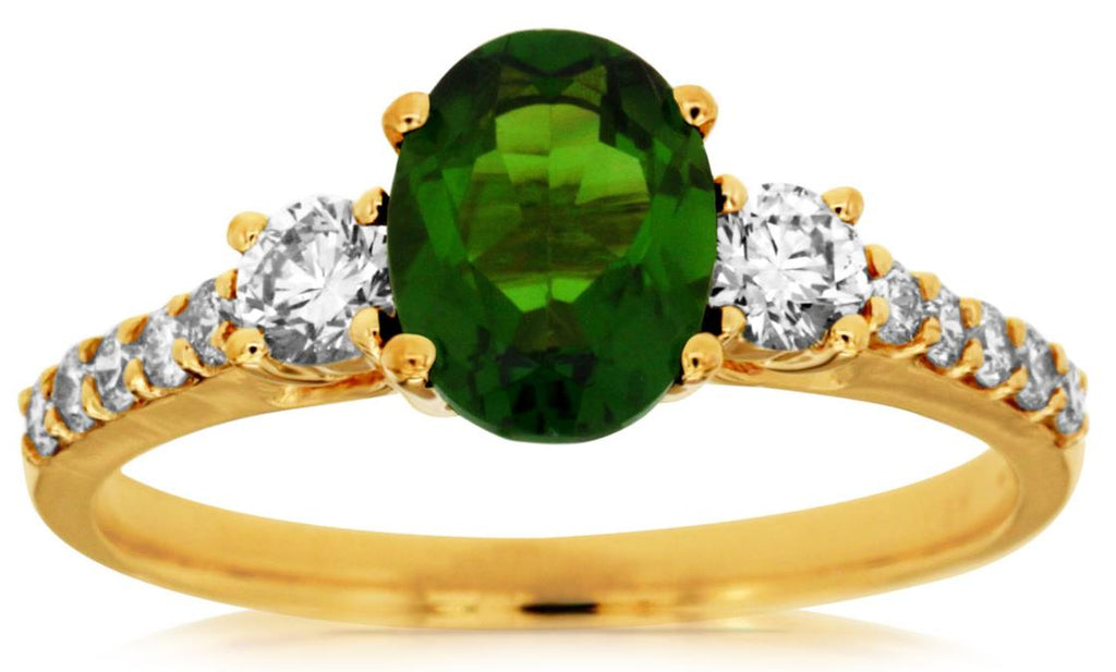 1.75CT DIAMOND & AAA RUSSALITE 14KT YELLOW GOLD 3D OVAL & ROUND ENGAGEMENT RING