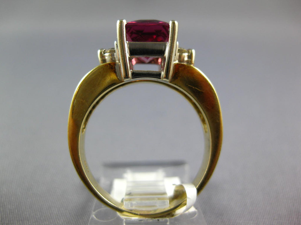 1.79CT DIAMOND & AAA PINK TOURMALINE 14K 2 TONE GOLD CUSHION CUT ENGAGEMENT RING