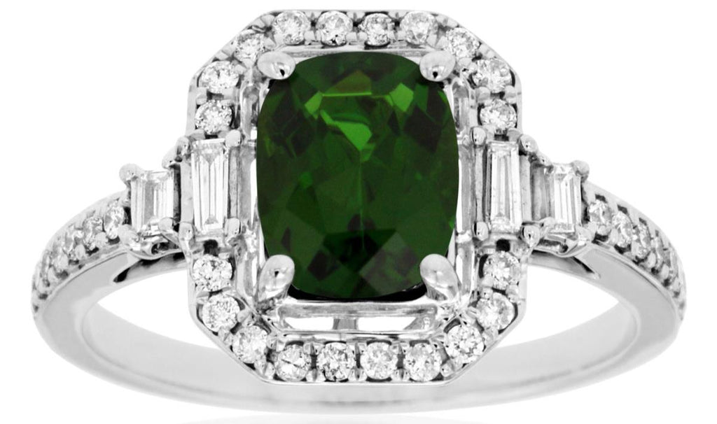 1.7CT DIAMOND & AAA GREEN GARNET 14KT WHITE GOLD CUSHION OCTAGON ENGAGEMENT RING