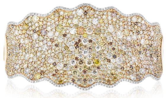 18.04CT WHITE & MULTI COLOR DIAMOND 18KT ROSE GOLD 3D COCKTAIL BANGLE BRACELET