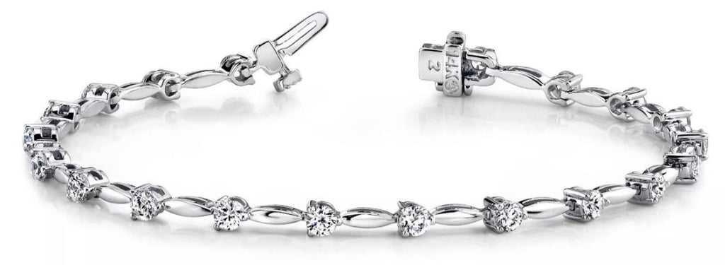 14KT WHITE GOLD TENNIS BRACELET. 3D CLASSIC THREE PRONG BY THE YARD ETERNITY DESIGN. ROUND DIAMONDS ARE F/G COLOR, VSSI CLARITY 1.82 CARATS. 7" INCHES LONG. WRITTEN APPRAISAL AVAILABLE. COMES IN A PRESENTABLE GIFT BOX.
