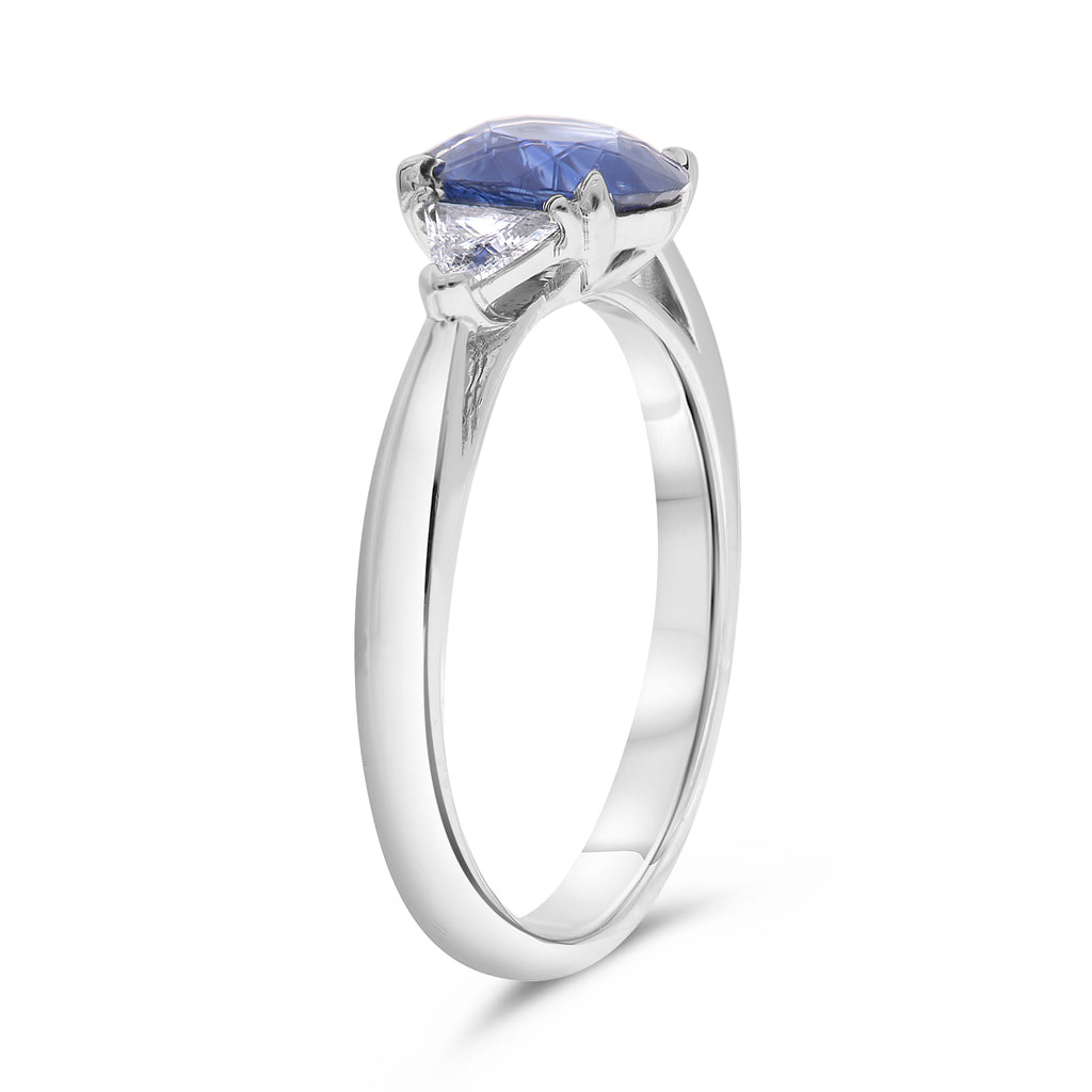 1.82CT DIAMOND & AAA SAPPHIRE PLATINUM OVAL & TRILLION 3 STONE ENGAGEMENT RING