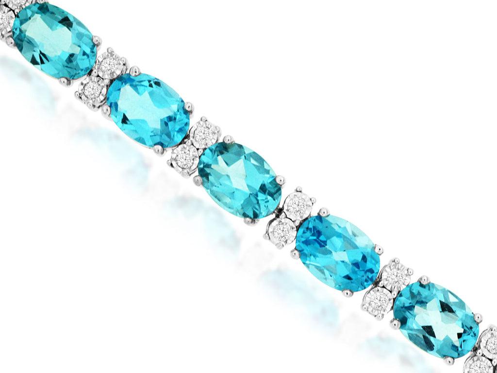 19.0CT DIAMOND & AAA BLUE TOPAZ 14KT WHITE GOLD OVAL & ROUND FILIGREE BRACELET