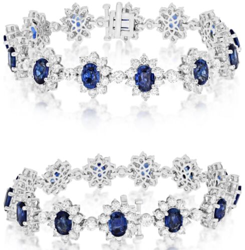 18KT WHITE GOLD TENNIS BRACELET. 3D MULTI FLOWER DESIGN. ROUND DIAMONDS ARE F/G COLOR, VS CLARITY 7.54 CARATS. AAA OVAL SAPPHIRES ARE 12.04 CARATS. 7" INCHES LONG. WRITTEN APPRAISAL AVAILABLE. COMES IN A PRESENTABLE GIFT BOX.