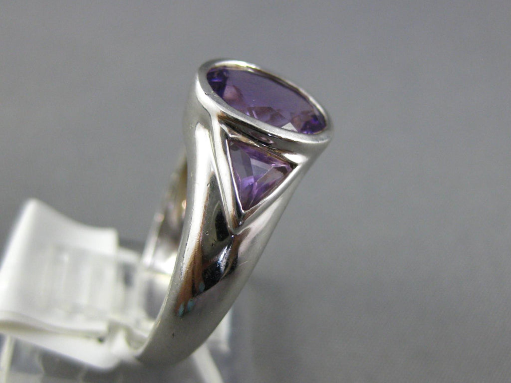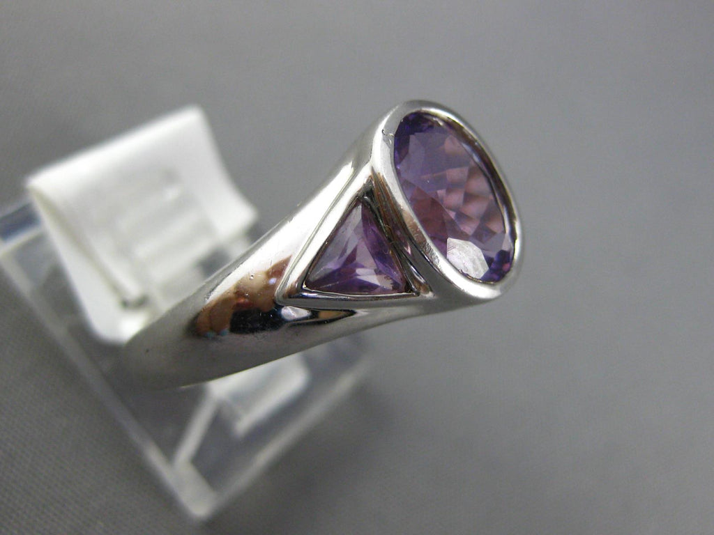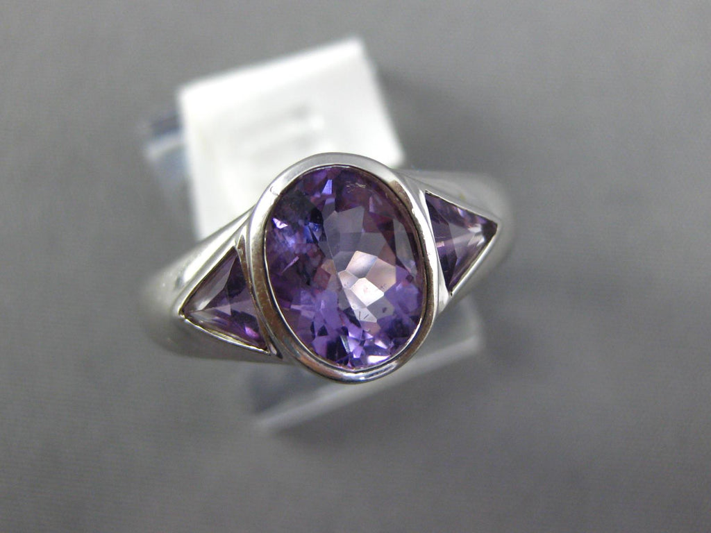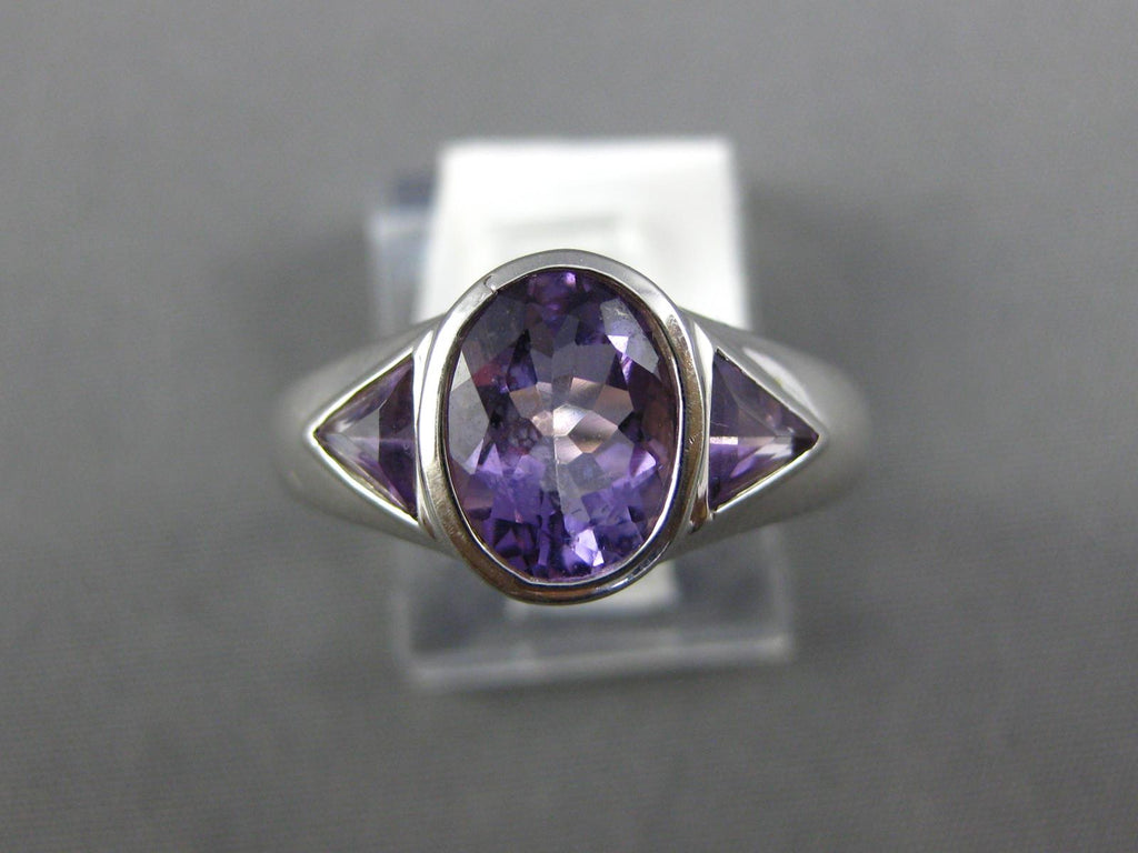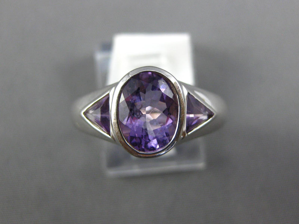 1.90CT AAA AMETHYST 14K WHITE GOLD OVAL & TRILLION 3 STONE BEZEL FRIENDSHIP RING