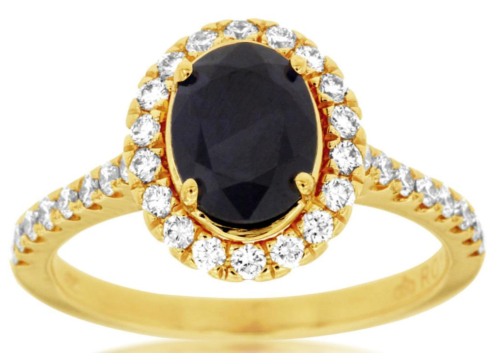 1.90CT DIAMOND & AAA SAPPHIRE 14KT YELLOW GOLD OVAL & ROUND HALO ENGAGEMENT RING
