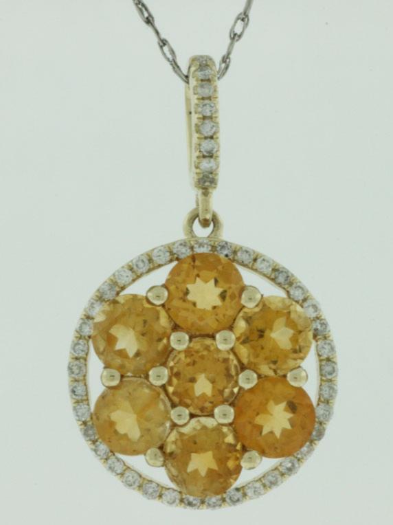1.91CT DIAMOND & AAA CITRINE 14KT YELLOW GOLD FLOWER CIRCULAR FLOATING PENDANT