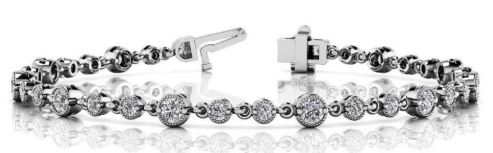 14KT WHITE GOLD LOVE TENNIS BRACELET. 3D CLASSIC FILIGREE MILGRAIN ETERNITY DESIGN. ROUND DIAMONDS ARE F/G COLOR, VSSI CLARITY 1.94 CARATS. 7" INCHES LONG. WRITTEN APPRAISAL AVAILABLE. COMES IN A PRESENTABLE GIFT BOX.