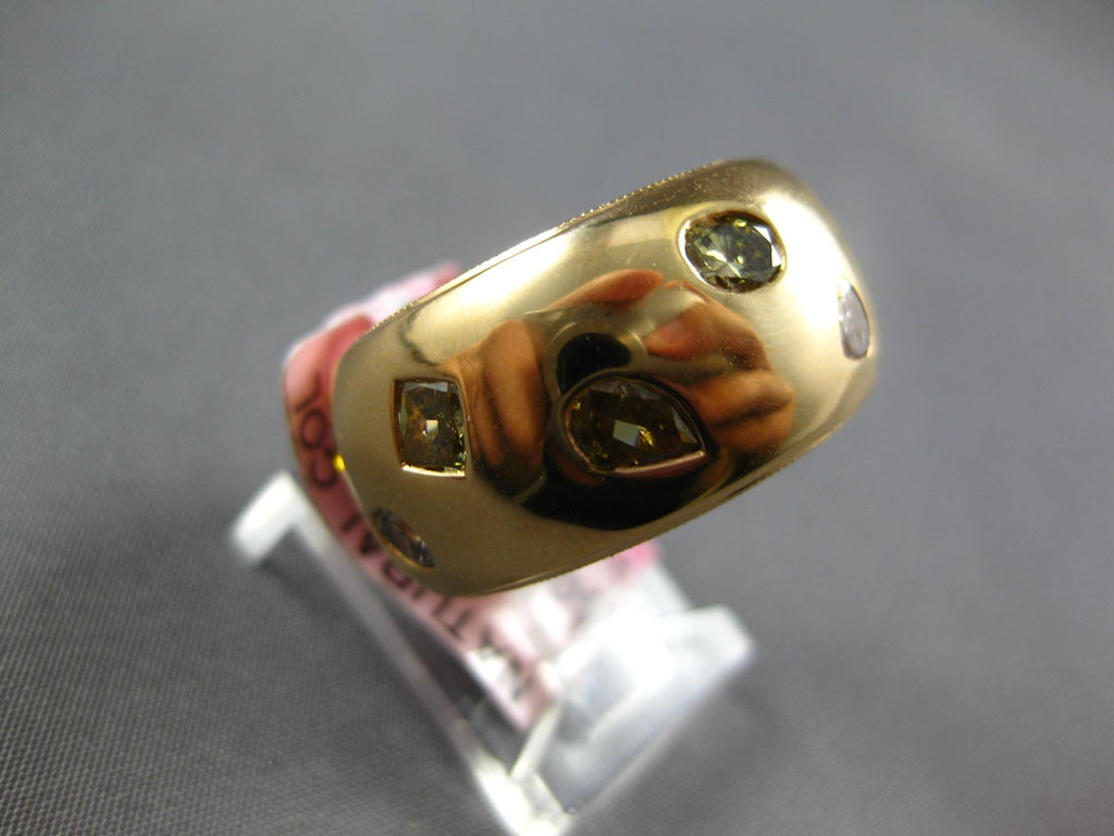 18KT YELLOW GOLD ANNIVERSARY RING. 3D MULTI SHAPE ETOILE DESIGN. MULTI COLOR DIAMONDS ARE 1.95 CARATS. MEASURES 11.5mm WIDE. RING SIZE 7.25. CAN BE SIZED BY OUR MASTER JEWELER UPON REQUEST. WRITTEN APPRAISAL AVAILABLE. COMES IN A PRESENTABLE GIFT BOX.
