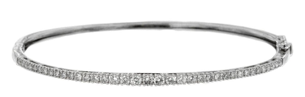 14KT WHITE GOLD CUFF BANGLE BRACELET. 3D CLASSIC SEMI ETRENITY DESIGN. ROUND DIAMONDS ARE F/G COLOR, VSSI CLARITY 1.0 CARAT. FITS UP TO 7" INCH WRIST. WRITTEN APPRAISAL AVAILABLE. COMES IN A PRESENTABLE GIFT BOX.