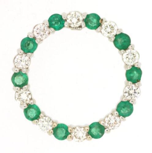 1CT DIAMOND & AAA EMERALD 14KT YELLOW GOLD ROUND CIRCLE OF LIFE FLOATING PENDANT