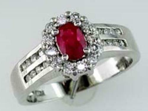 14KT WHITE GOLD LOVE RING. 3D CLASSIC FLOWER DESIGN. ROUND DIAMONDS ARE F/G COLOR, VSSI CLARITY .55 CARATS. AAA OVAL RUBY IS .45 CARATS. RING SIZE 7. CAN BE SIZED BY OUR MASTER JEWELER UPON REQUEST. WRITTEN APPRAISAL AVAILABLE. COMES IN A PRESENTABLE GIFT BOX.