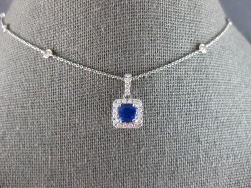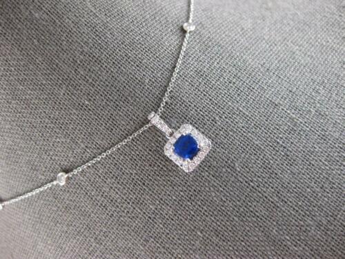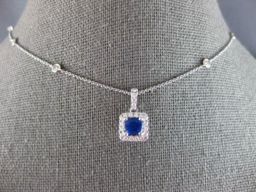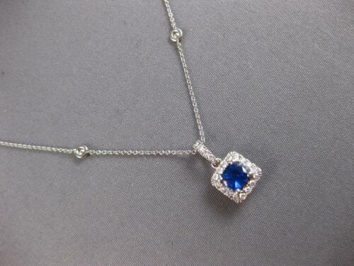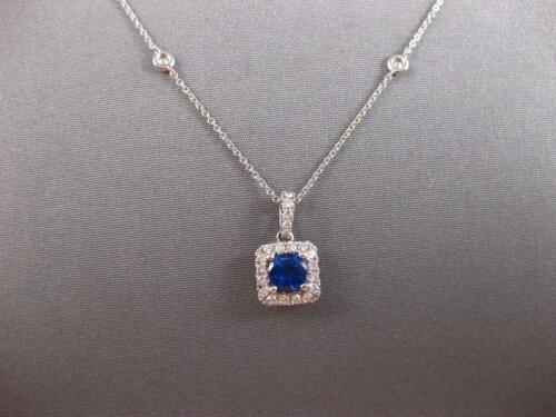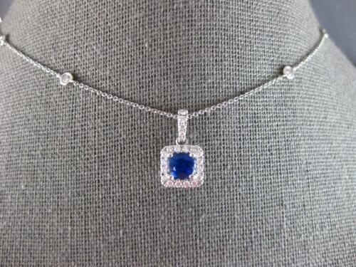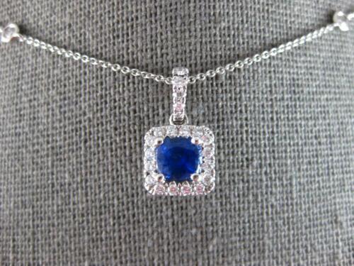 18KT WHITE GOLD LOVE PENDANT. 3D CLASSIC HALO SQUARE BY THE YARD DESIGN. ROUND DIAMONDS ARE F/G COLOR, VVS-VS CLARITY .37 CARATS. AAA ROUND SAPPHIRE IS .63 CARATS. SAPPHIRE MEASURES 5mm WIDE. PENDANT MEASURES 16mm X 8.5mm. COMES ON A 14KT GOLD DIAMOND CUT 18" INCH CHAIN. WRITTEN APPRAISAL AVAILABLE. COMES IN A PRESENTABLE GIFT BOX.