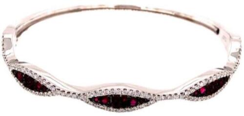 2.02CT DIAMOND & AAA RUBY 18KT WHITE GOLD 3D LEAF MARQUISE CUFF BANGLE BRACELET
