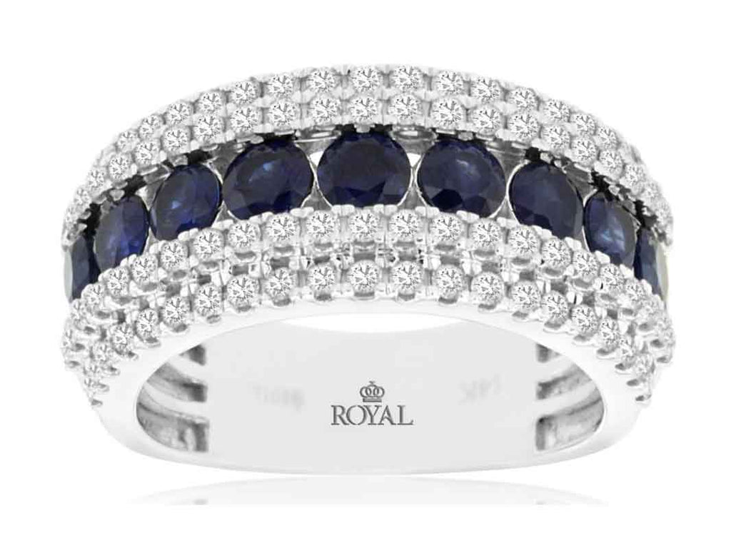 2.02CT DIAMOND & AAA SAPPHIRE 14KT WHITE GOLD CLASSIC MULTI ROW ANNIVERSARY RING