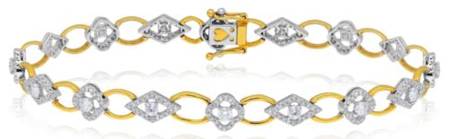 2.03CT DIAMOND 14KT TWO TONE GOLD MULTI FLOWER GEOMETRICAL OVAL TENNIS BRACELET