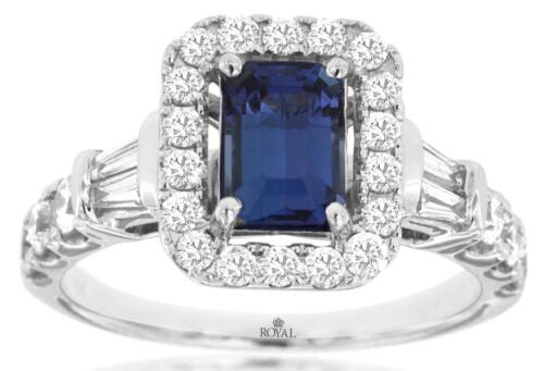 14KT WHITE GOLD ENGAGEMENT RING. 3D CLASSIC HALO DESIGN. ROUND DIAMONDS ARE F/G COLOR, VSSI CLARITY .88 CARATS. AAA EMERALD CUT TANZANITE IS 1.16 CARATS. RING SIZE 7. CAN BE SIZED BY OUR MASTER JEWELER UPON REQUEST. WRITTEN APPRAISAL AVAILABLE. COMES IN A PRESENTABLE GIFT BOX.
