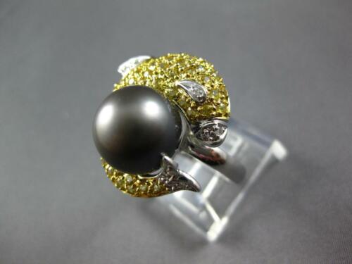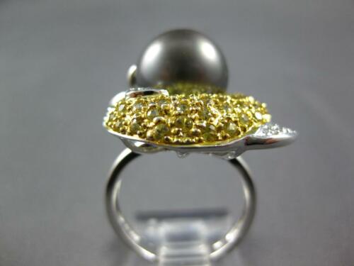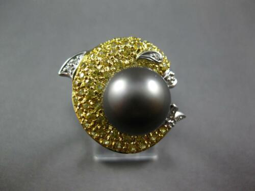 14KT WHITE GOLD RING. 3D HAPPY DOLPHIN DESIGN. DIAMONDS ARE F/G COLOR, VS CLARITY .07 CARATS. AAA YELLOW SAPPHIRES ARE 2.0 CARATS. FEATURES AAA TAHITIAN PEARL. MEASURES 22mm WIDE. RING SIZE 7. CAN BE SIZED BY OUR MASTER JEWELER UPON REQUEST. WRITTEN APPRAISAL AVAILABLE. COMES IN A PRESENTABLE GIFT BOX.