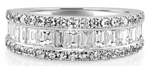 2.09CT DIAMOND 18K WHITE GOLD 3D ROUND & BAGUETTE CLASSIC 3 ROW ANNIVERSARY RING