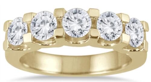 2.0CT DIAMOND 14KT YELLOW GOLD 3D ROUND 5 STONE LUCIDA WEDDING ANNIVERSARY RING