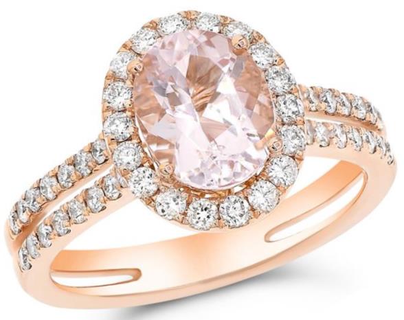 2.0CT DIAMOND & AAA MORGANITE 14KT ROSE GOLD OVAL & ROUND HALO ENGAGEMENT RING