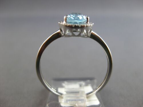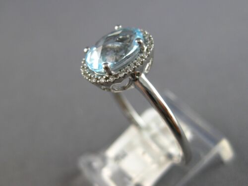 18KT WHITE GOLD ENGAGEMENT RING. 3D CLASSIC HALO DESIGN. ROUND DIAMONDS ARE F/G COLOR, VSSI CLARITY .52 CARATS. AAA EXTRA FACETED OVAL AQUAMARINE IS 1.60 CARATS. MEASURES 10mm WIDE. RING SIZE 8.25. CAN BE SIZED BY OUR MASTER JEWELER UPON REQUEST. WRITTEN APPRAISAL AVAILABLE. COMES IN A PRESENTABLE GIFT BOX.