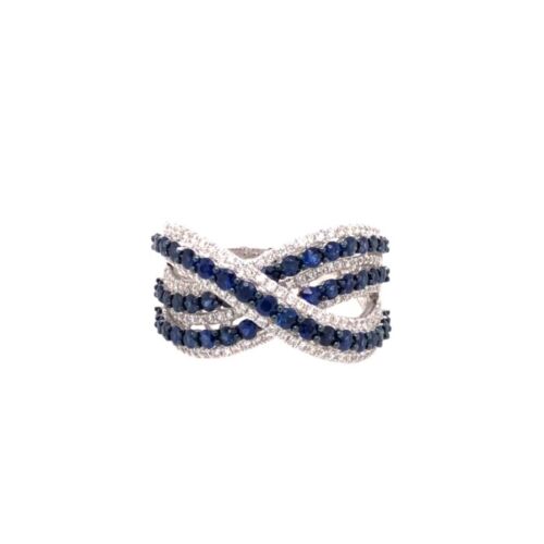 2.12CT DIAMOND & AAA SAPPHIRE 18KT WHITE GOLD 3D CRISS CROSS INFINITY LOVE RING