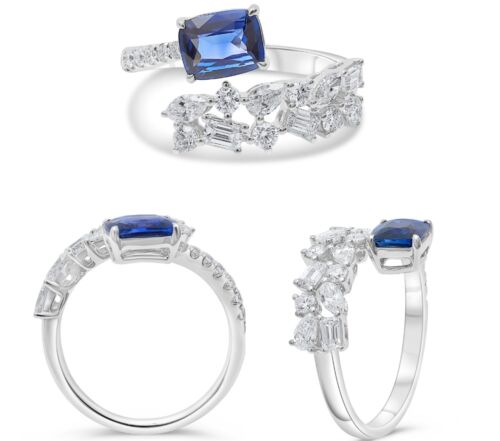 2.12CT DIAMOND & AAA SAPPHIRE 18KT WHITE GOLD 3D MULTI SHAPE & CUSHION FUN RING