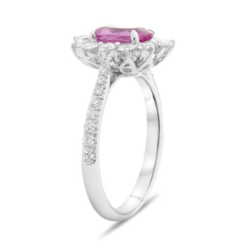 2.13CT DIAMOND & AAA PINK SAPPHIRE 18KT WHITE GOLD OVAL FLOWER ENGAGEMENT RING