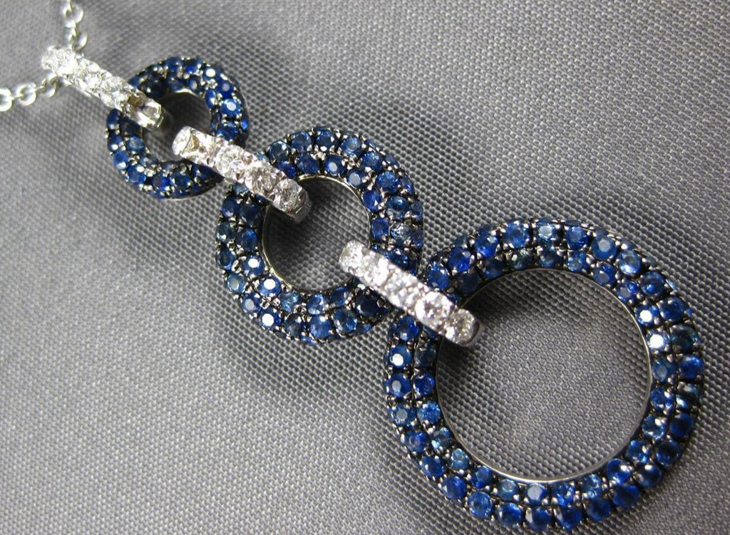18KT WHITE GOLD LOVE PENDANT. 3D GRADUATING CIRCLE OF LIFE JOURNEY DESIGN. DIAMONDS ARE F/G COLOR, VSSI CLARITY .30 CARATS. AAA SAPPHIRES ARE 1.86 CARATS. MEASURES 42mm X 16mm. COMES ON A 14KT GOLD DIAMOND CUT 18" INCH CHAIN. WRITTEN APPRAISAL AVAILABLE. COMES IN A PRESENTABLE GIFT BOX.