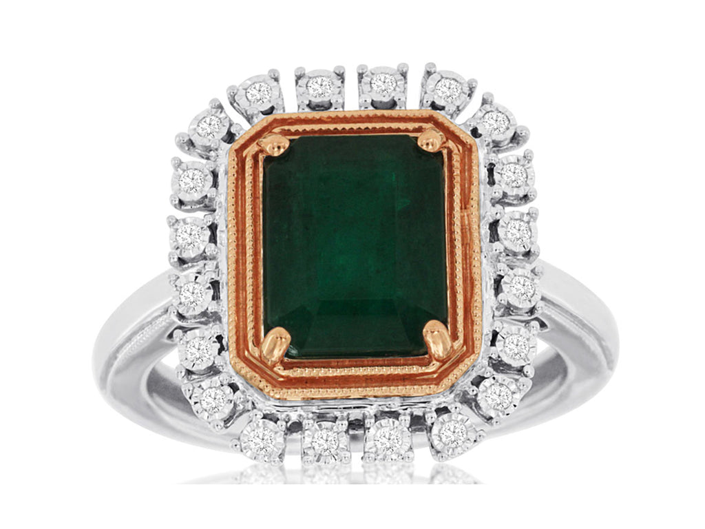 2.25CT DIAMOND & AAA EMERALD 14KT WHITE & ROSE GOLD EMERALD CUT ENGAGEMENT RING