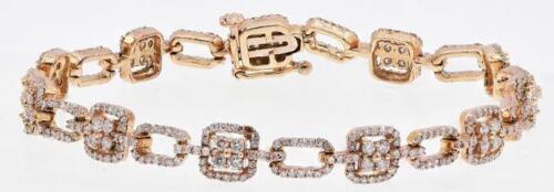 2.27CT DIAMOND 14KT ROSE GOLD 3D ROUND SQUARE BY THE YARD LOVE TENNIS BRACELET