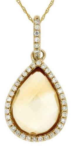 14KT YELLOW GOLD FLOATING PENDANT. 3D HALO CLASSIC TEAR DROP DESIGN. ROUND DIAMONDS ARE F/G COLOR, VSSI CLARITY .13 CARATS. AAA EXTRA FACETED PEAR SHAPE CITRINE IS 2.15 CARATS. COMES ON A 14KT GOLD DIAMOND CUT 16" INCH CHAIN. WRITTEN APPRAISAL AVAILABLE. COMES IN A PRESENTABLE GIFT BOX.