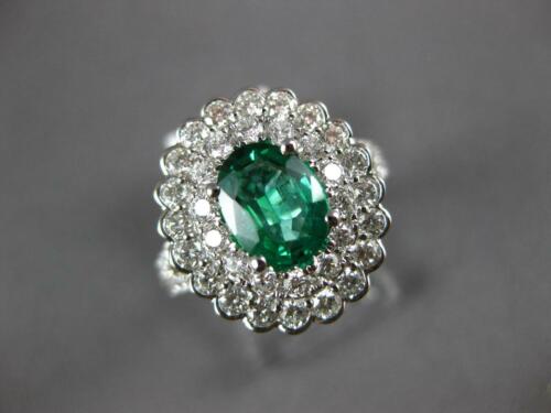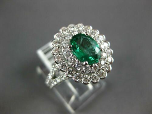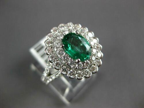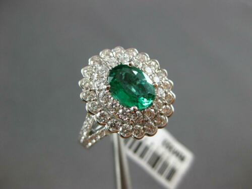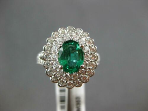 18KT WHITE GOLD ENGAGEMENT RING. 3D DOUBLE HALO DESIGN. ROUND DIAMONDS ARE F/G COLOR, VSSI CLARITY 1.27 CARATS. AAA OVAL EMERALD IS 1.02 CARATS. EMERALD MEASURES 8mm X 6.5mm. RING MEASURES 16mm WIDE. RING SIZE 7. CAN BE SIZED BY OUR MASTER JEWELER UPON REQUEST. WRITTEN APPRAISAL AVAILABLE. COMES IN A PRESENTABLE GIFT BOX.