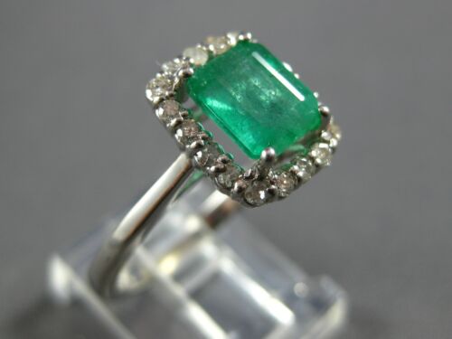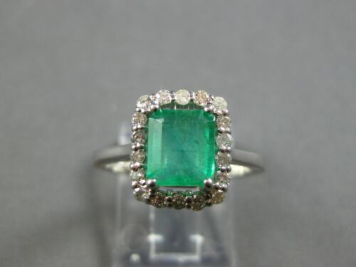 14KT WHITE GOLD ENGAGEMENT RING. 3D CLASSIC SQUARE HALO DESIGN. ROUND DIAMONDS ARE F/G COLOR, VSSI CLARITY .30 CARATS. AAA EMERALD CUT EMERALD IS 2.0 CARATS. EMERALD MEASURES 7mm X 6mm. RING MEASURES 11.5mm WIDE. RING SIZE 6.75. CAN BE SIZED BY OUR MASTER JEWELER UPON REQUEST. WRITTEN APPRAISAL AVAILABLE. COMES IN A PRESENTABLE GIFT BOX.