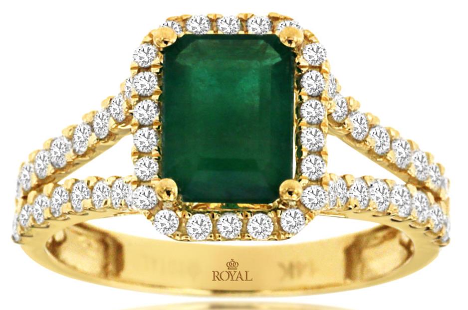 2.31CT DIAMOND & AAA EMERALD 14KT YELLOW GOLD EMERALD CUT ROUND ENGAGEMENT RING