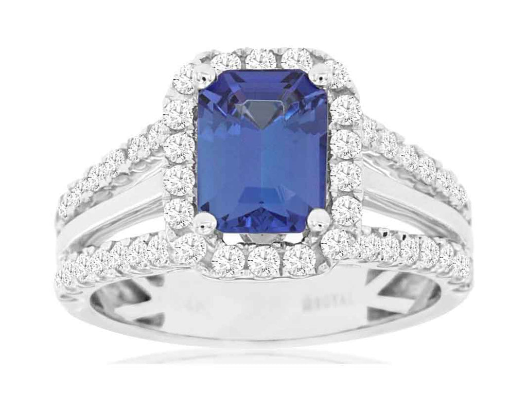 2.35CT DIAMOND & AAA TANZANITE 14KT WHITE GOLD 3D HALO OCTAGON ENGAGEMENT RING
