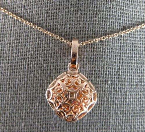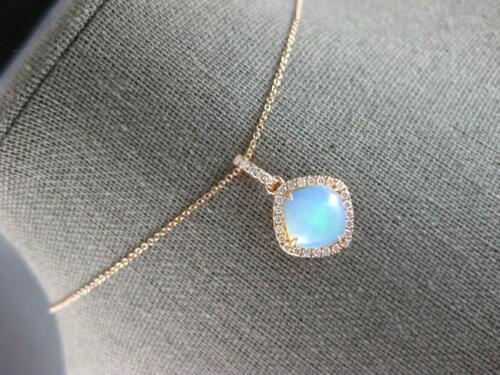 14KT ROSE GOLD FLOATING PENDANT. 3D CLASSIC HALO FILIGREE DESIGN. ROUND DIAMONDS ARE F/G COLOR, VSSI CLARITY .29 CARATS. AAA CUSHION CUT AUSTRALIAN OPAL IS 2.10 CARATS. AUSTRALIAN OPAL MEASURES 9mm WIDE. PENDANT MEASURES 22mm X 13.5mm. COMES ON A 14KT GOLD DIAMOND CUT 16" INCH CHAIN. WRITTEN APPRAISAL AVAILABLE. COMES IN A PRESENTABLE GIFT BOX.