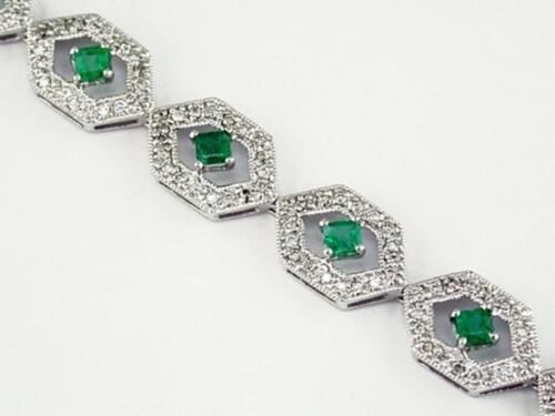 2.45CT DIAMOND & AAA EMERALD 14KT WHITE GOLD PRINCESS & ROUND HEXAGON BRACELET