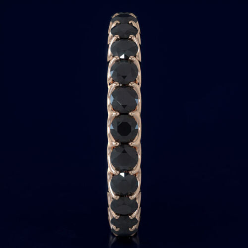 14KT ROSE GOLD WEDDING ANNIVERSARY RING. 3D CLASSIC SHARED PRONG ETERNITY DESIGN. ROUND BLACK DIAMONDS ARE 2.53 CARATS. RING SIZE 7. RING ALSO COMES IN SIZES 5-9. FOR PRICING PLEASE CONTACT US. WRITTEN APPRAISAL AVAILABLE. COMES IN A PRESENTABLE GIFT BOX.