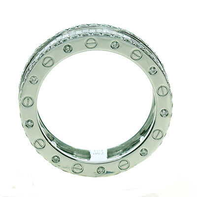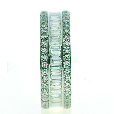 18KT WHITE GOLD LOVE ANNIVERSARY RING. 3D CLASSIC THREE ROW ETOILE ETERNITY DESIGN. DIAMONDS ARE F/G COLOR, VSSI CLARITY. BAGUETTE DIAMONDS ARE 1.25 CARATS. ROUND DIAMONDS ARE 1.28 CARATS. RING SIZE 7. CAN BE SIZED BY OUR MASTER JEWELER UPON REQUEST. WRITTEN APPRAISAL AVAILABLE. COMES IN A PRESENTABLE GIFT BOX.
