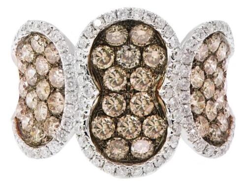 2.54CT WHITE & MOCHA DIAMOND 14K WHITE GOLD PAST PRESENT FUTURE CLUSTER FUN RING