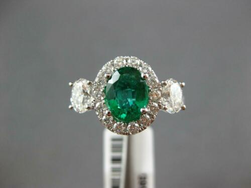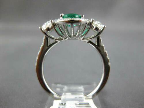 18KT WHITE GOLD ENGAGEMENT RING. 3D HALO PAST PRESENT FUTURE DESIGN. DIAMONDS ARE F/G COLOR, VSSI CLARITY. ROUND DIAMONDS ARE .60 CARATS. OVAL DIAMONDS ARE .77 CARATS. AAA OVAL EMERALD IS 1.18 CARATS. EMERALD MEASURES 8mm X 6.5mm. RING MEASURES 12mm WIDE. RING SIZE 7. CAN BE SIZED BY OUR MASTER JEWELER UPON REQUEST. WRITTEN APPRAISAL AVAILABLE. COMES IN A PRESENTABLE GIFT BOX.