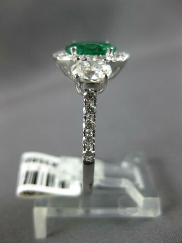 2.55CT DIAMOND & AAA EMERALD 18K WHITE GOLD 3D OVAL & ROUND HALO ENGAGEMENT RING