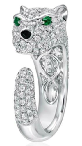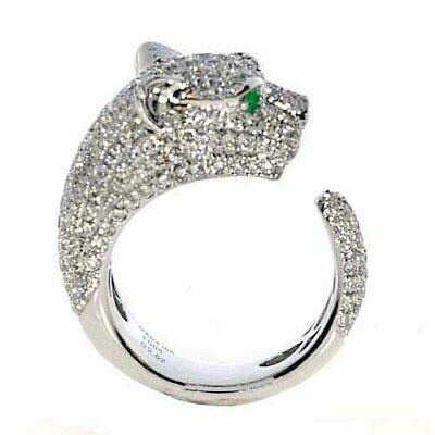 2.55CT DIAMOND & AAA EMERALD 18KT WHITE GOLD 3D HAPPY PANTHER JAGUAR FUN RING