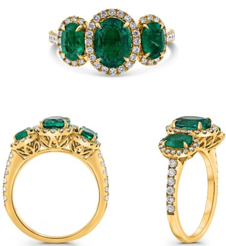 2.57CT DIAMOND & AAA EMERALD 18KT YELLOW GOLD 3D OVAL & ROUND ENGAGEMENT RING