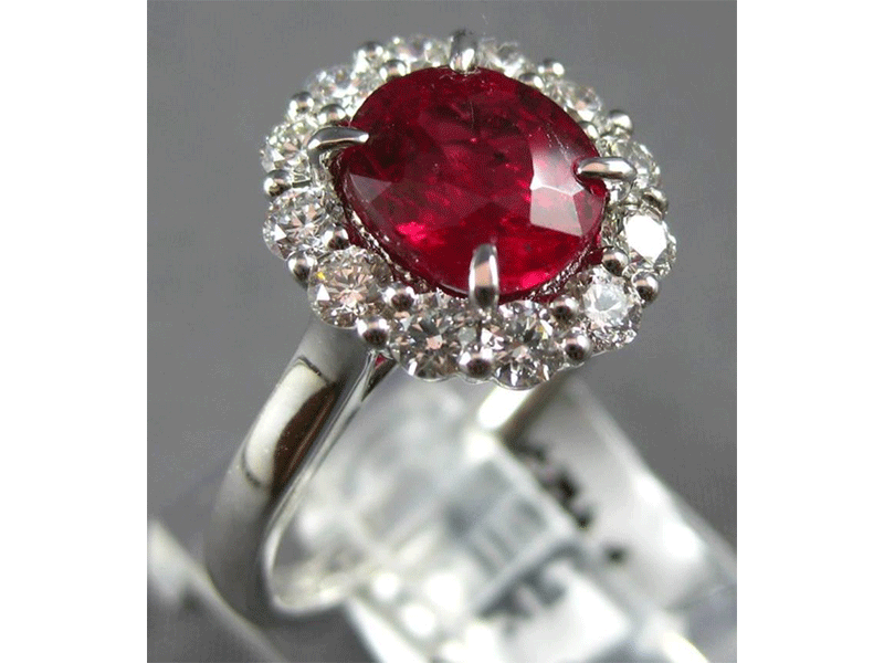 2.58CT DIAMOND & AAA RUBY 18KT WHITE GOLD 3D OVAL & ROUND FLOWER ENGAGEMENT RING
