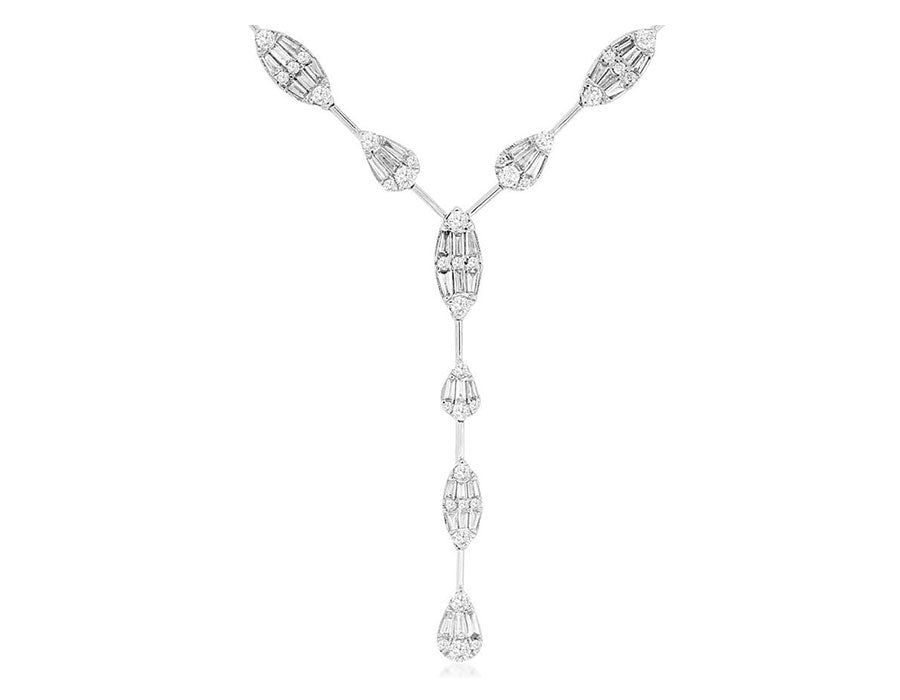 2.5CT DIAMOND 14KT WHITE GOLD 3D ROUND & BAGUETTE MARQUISE & PEAR SHAPE NECKLACE