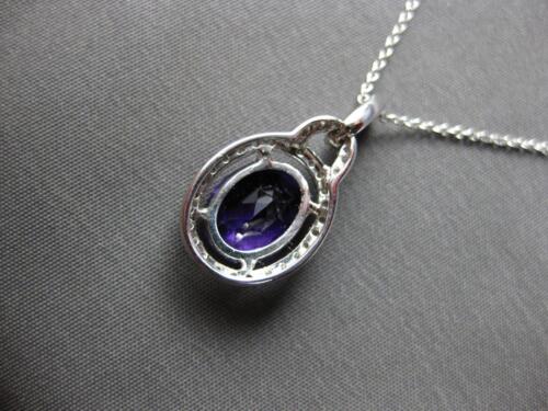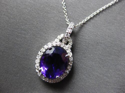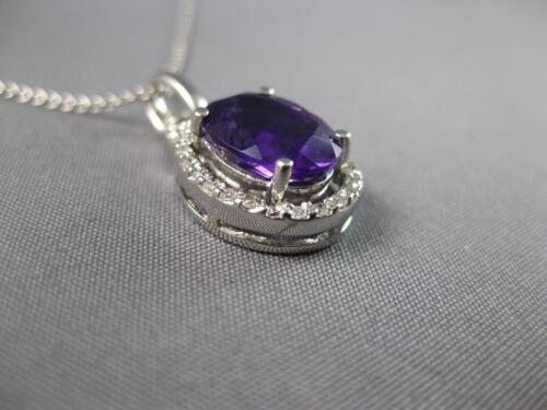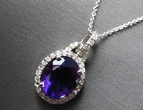2.64CT DIAMOND & AAA AMETHYST 14KT WHITE GOLD OVAL & ROUND HALO FLOATING PENDANT